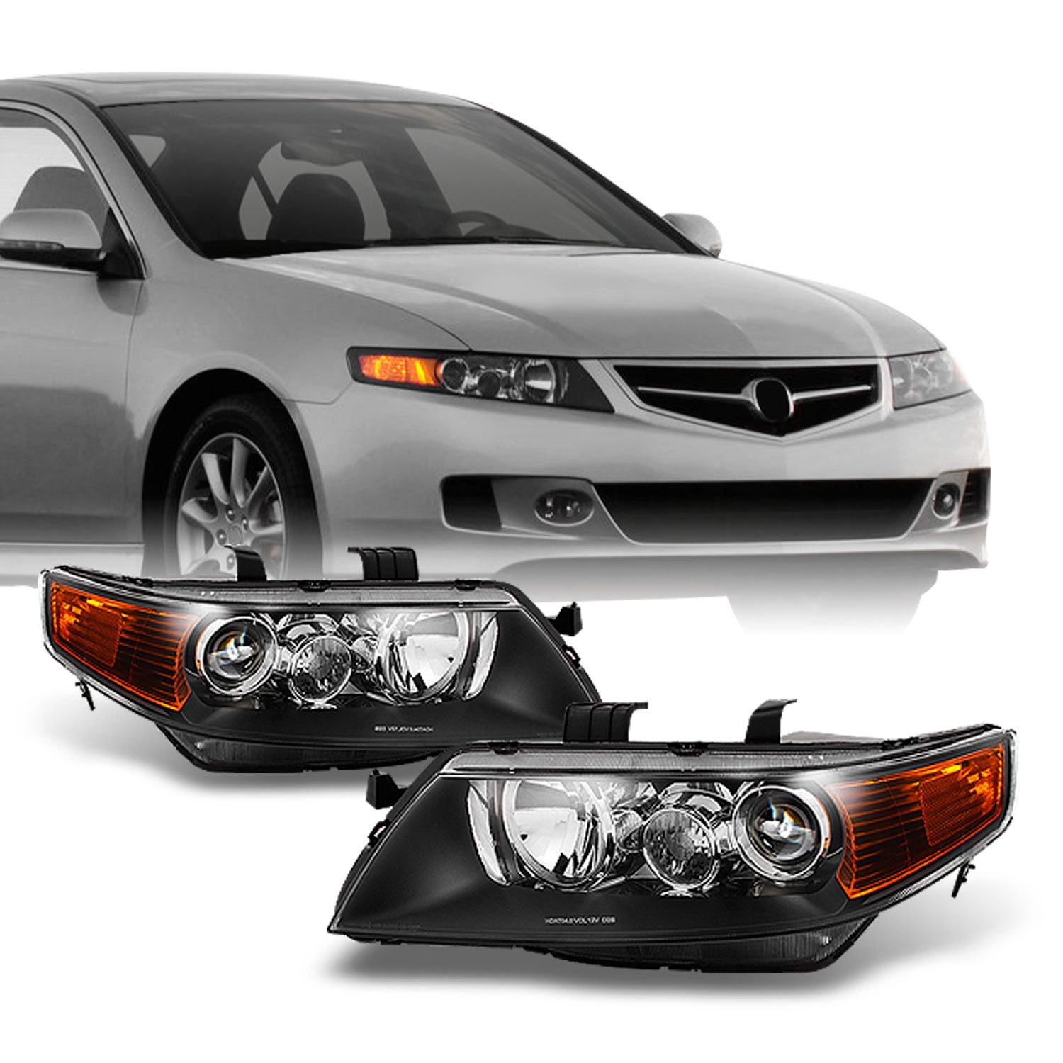 Fit 2004 2008 Acura Tsx Cl9 Black Bezel Projector Headlights Replacement 04 08 Walmart Com